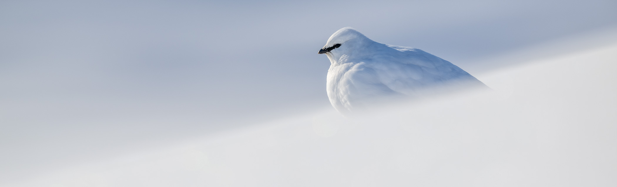 Ebenfalls faszinierend sind die Schneehühner, wahre Meister der Tarnung. In der weissen Winterlandschaft verraten sie sich oft nur durch ihre schwarzen Augen. Gerade daraus entstehen fotografisch besonders reizvolle Motive – minimalistisch, ruhig und oft in Form klassischer High-Key-Aufnahmen, die die Stille der Arktis perfekt widerspiegeln.